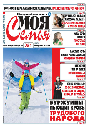 Общероссийская газета «Моя Семья» существует с 2000 года и входит в число самых популярных изданий России. Газета является не просто средством информации; для многих людей стало жизненной потребностью прочитать её раз в неделю – это сродни желанию увидеться с родственниками, поговорить с друзьями. Подавляющее большинство читателей не пропускает ни одного номера. «Моя Семья» задумана как газета о человеческих отношениях. Редакция делает упор на историях из жизни, и многие публикации представляют собой короткие рассказы. Главной основой газетных заметок являются письма читателей, что делает «Мою Семью» уникальной – все истории здесь подлинные.