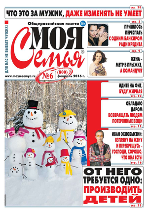 Общероссийская газета «Моя Семья» существует с 2000 года и входит в число самых популярных изданий России. Газета является не просто средством информации; для многих людей стало жизненной потребностью прочитать её раз в неделю – это сродни желанию увидеться с родственниками, поговорить с друзьями. Подавляющее большинство читателей не пропускает ни одного номера. «Моя Семья» задумана как газета о человеческих отношениях. Редакция делает упор на историях из жизни, и многие публикации представляют собой короткие рассказы. Главной основой газетных заметок являются письма читателей, что делает «Мою Семью» уникальной – все истории здесь подлинные.